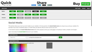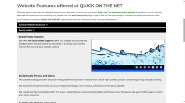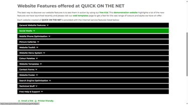 The platform embraced the rise of social media integration, allowing users to connect their websites to Facebook, Instagram, LinkedIn, and more. Every page came equipped with sharing features, helping users boost visibility and engagement across social platforms. QUICK ON THE NET also made search engine optimisation (SEO) simple, offering step-by-step guidance to help users optimise pages and monitor performance on Google and Bing.